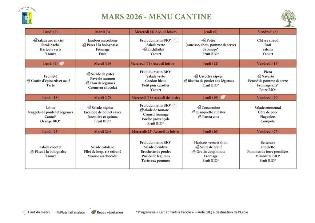 La commission restauration scolaire se réunit tous les 2 mois, en compagnie des cuisinières, de l’AIPE, des membres de la Mairie, du périscolaire et d’une diététicienne, pour veiller à la qualité, à l’équilibre et à la diversité des repas servis aux enfants.