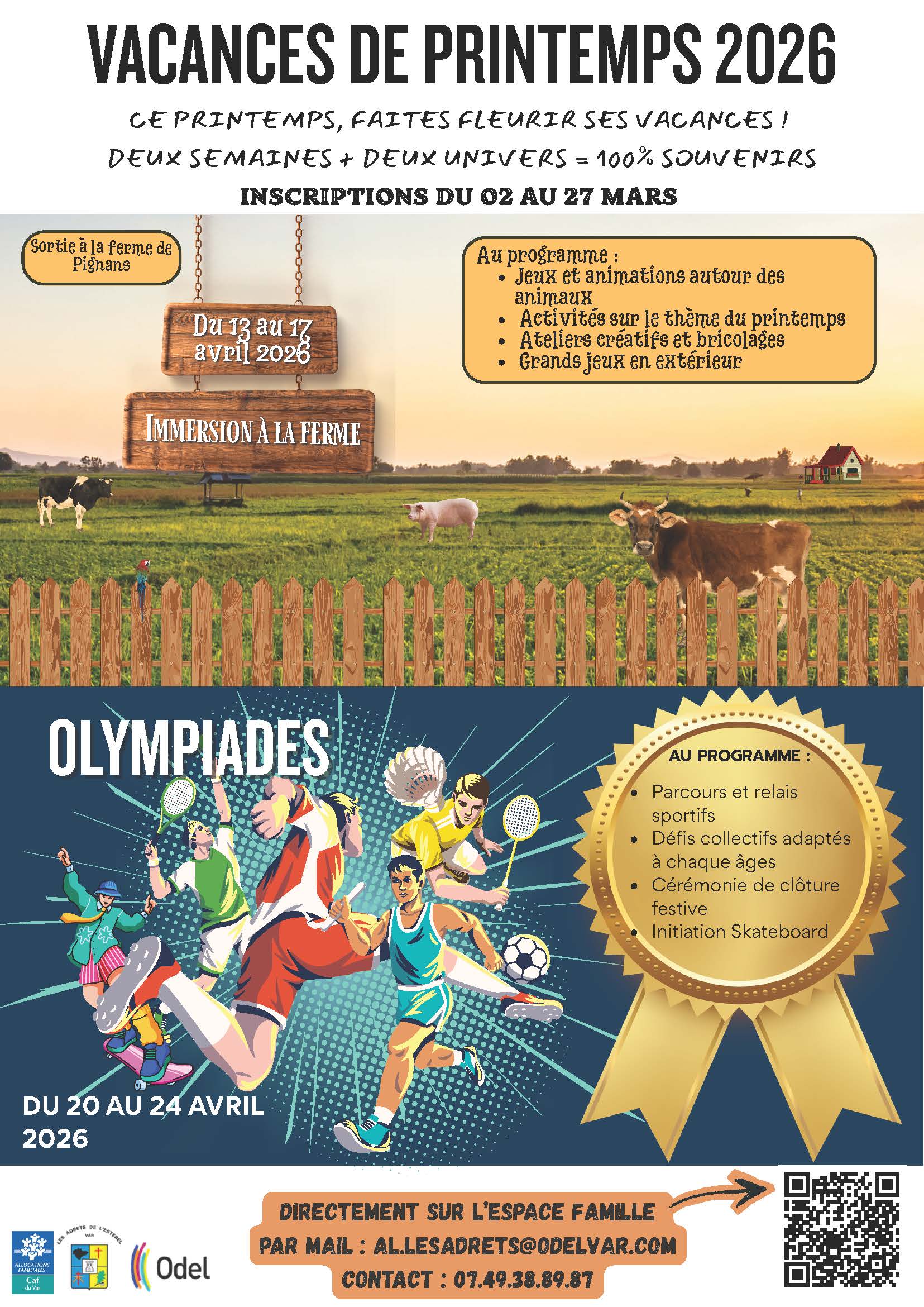 L’ODEL organise l’accueil des enfants âgés de 3 à 11 ans pendant les vacances scolaires, le